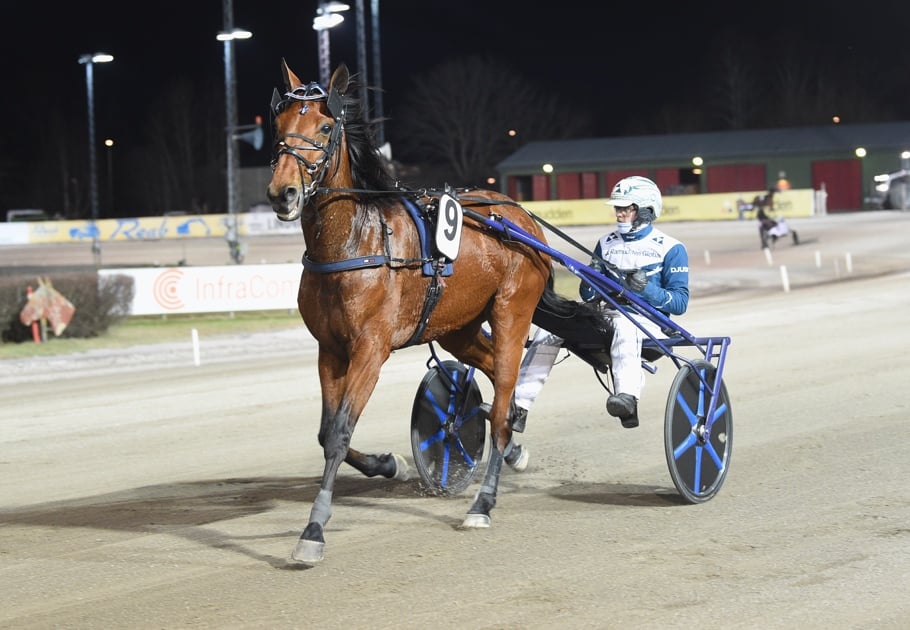 ”Hon öppnade väldigt bra och kändes mycket fin hela loppet. Hon blev kanske lite väl pigg men jag blev aldrig orolig”, sade Fredrik som nu avslutat året med inkörda 4,4 miljoner och de sista sex starterna med fem segrar och ett andrapris. Fredrik fick chansen med Sybille Tinter-tränade hästar i oktober och på 27 starter har det blivit tolv segrar, sex andra- och två tredjepris.