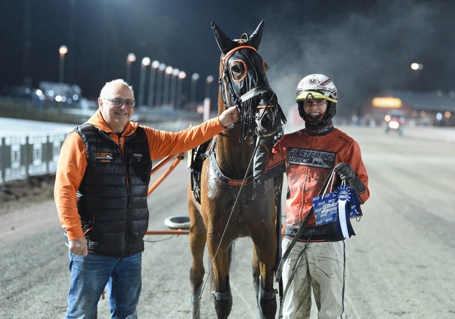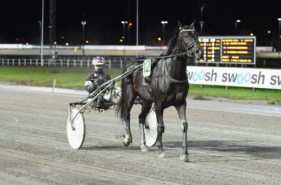 Catrin Pettersson hade en fin kväll med en seger och ett tredjepris på sina två starthästar. Ridge Tarn Aramis (e. Make it Happen) kunde smyga med i tredje/andra utvändigt för Fredrik Plassen som kunde vänta med attacken till 250 kvar. Segertid 16,3a/2140. Catrin är också uppfödare tillsammans med Eric Ninsved och ägare med Eric och Moa Ninsved som också är skötare. Karriärens tredje seger. Tidigare två segerkuskar har varit Elias Strandberg och Kevin Svedlund. Ridge Tarn Aramis är första avkomman till Holly Bermon. Mormorsmor är härliga miljonärskan Kitty Bermon.