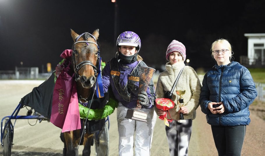 ”Hon har visat bra form och jag hade en bra känsla inför loppet. Hon älskar att springa och hon kändes fin hela vägen. Vi tränar henne mest med galopp på skogsvägarna. Nu blir det kanske ingen mera start i år”, sade Lo med licensen på Östersund.