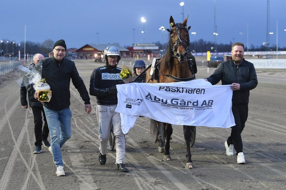 Påskstayern - Din Bil såg länge ut att bli en fight mellan ledande Tiberius Victory/Andreas Lövdal och utvändige Fangio/Robert Bergh. Bakom de båda smög Markus B Svedberg med You To Gangster (e. Helgafell) i andra utvändigt och trots en kortare galopp 300 kvar fick han greppet sista biten efter en mycket stark avslutning. Segertid 15,8/3140 meter via 1.12 sista 800. 100.000 kronor till Fredrik Månsson i Söderköping. Ronja Laminen är skötare.