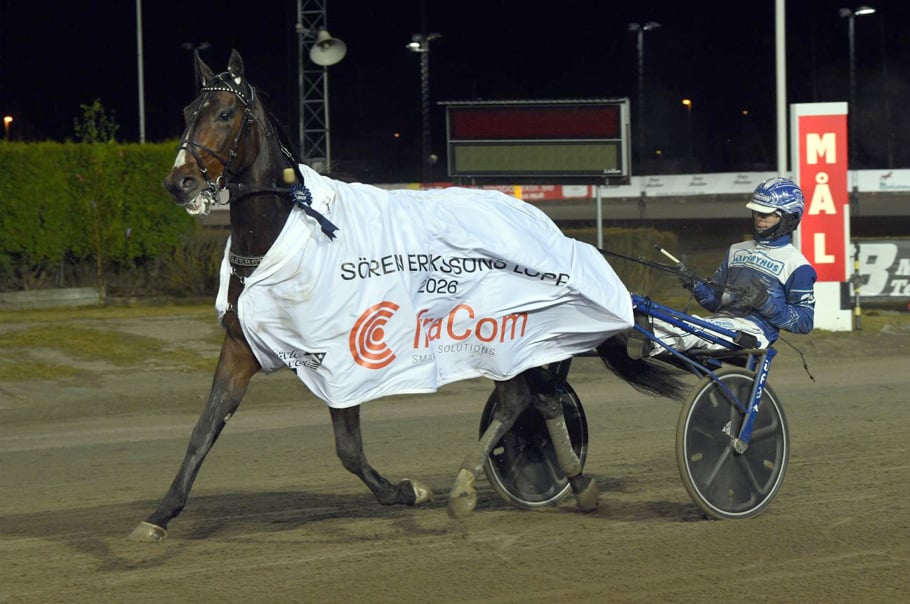 Magnus A Djuse såg också ut att gå mot den andra raka segern i Sören Erikssons lopp - InfraCom med Fantom Jet som från spets höll greppet till cirka tio meter från mål då välstammade Crowe Motion (e. Propulsion med Ready Cash som morfar) dök upp med en sylvass avslutning för Daniel Wäjersten. Det löste sig från tredje invändigt till andra utvändigt 600 kvar och fritt i sista sväng. Segertid 12,5a/2140 via 09,6 sista 800 och 100.000 kronor till Idbyn Invest AB med flera. Johanna Persson är skötare. Crowe Motion är första avkomman till vassa Cash Crowe (4,2 miljoner) vinnare i Derbystoet 2017 tränad av sin uppfödare Petri Puro. Mormor Giant Crowe lämnade också Staro Mack Crowe (5 miljoner). Mormorsmor Somack (1,5 miljoner) lämnade Commander Crowe (34,3 miljoner).