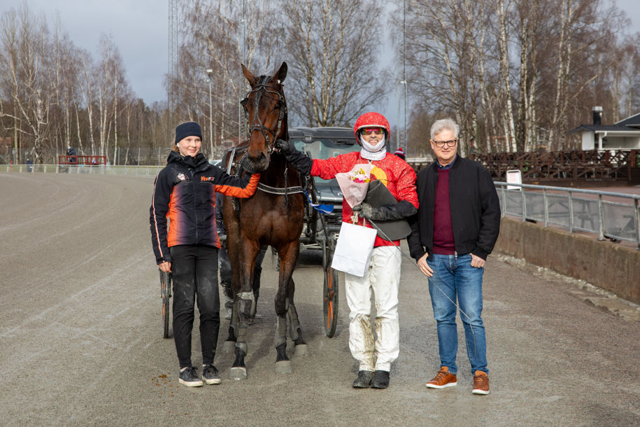 ”Vi fick ett jättefint lopp. Jag var fokuserad på att köra trav i svängarna. Hon är snabb i benen och har fått mer muskler under vintern. Hon avgjorde väldigt säkert och stallet har gjort ett bra jobb”, sade ”Calle”.