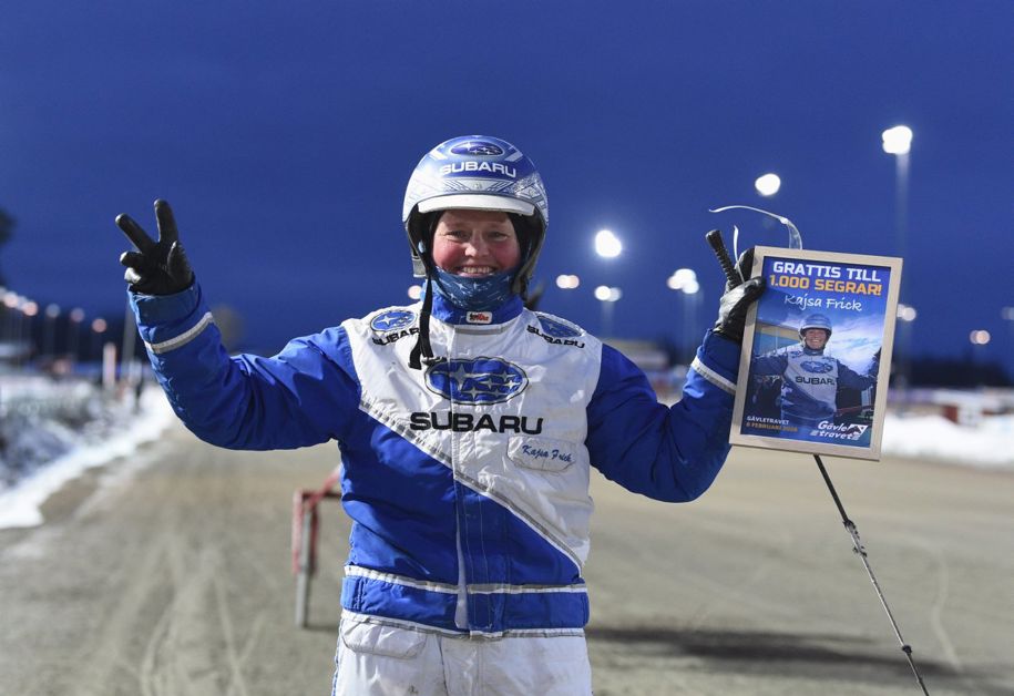 8 februari 2026 kommer alltid att vara ett datum att minnas i svensk travsport. Det var då som Kajsa Frick nådde drömgränsen 1000 kusksegrar och blev första kvinna i Sverige att klara den bedriften. Ett stort GRATTIS från Gävletravet där Kajsa har tävlat under alla år sedan hon som 18-åring vann sitt första lopp. Dessutom på sin födelsedag 11 mars 1994. Jubileumshästen blev fyraåriga Dania Gel (e. Nuncio), yngst i loppet som en av två fyraåringar, som från spets höll greppet hela vägen. Segertid 15,4a/2140 via 1.12 sista 800 och 35.000 kronor till Gunnar Lassis och Elisabeth Axelsson som uppfödare och ägare. Mormorsmor Ring In Peace lämnade Kriterievinnaren, Derbyvinnaren, Europaderbyvinnaren och Elitloppsvinnaren Conny Nobell (13,8 miljoner).
