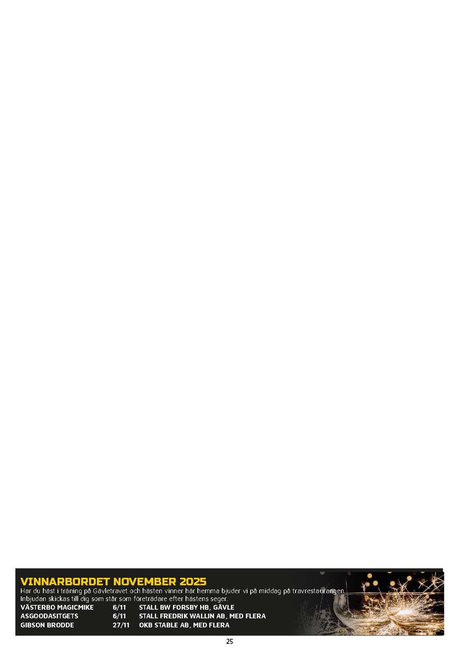 Nedan är de Gävletränade hästar som vunnit lopp hemma på Gävletravet 2025.